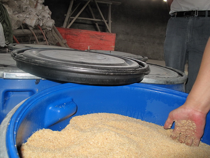 使用饲料大桶对豆粕进行发酵。